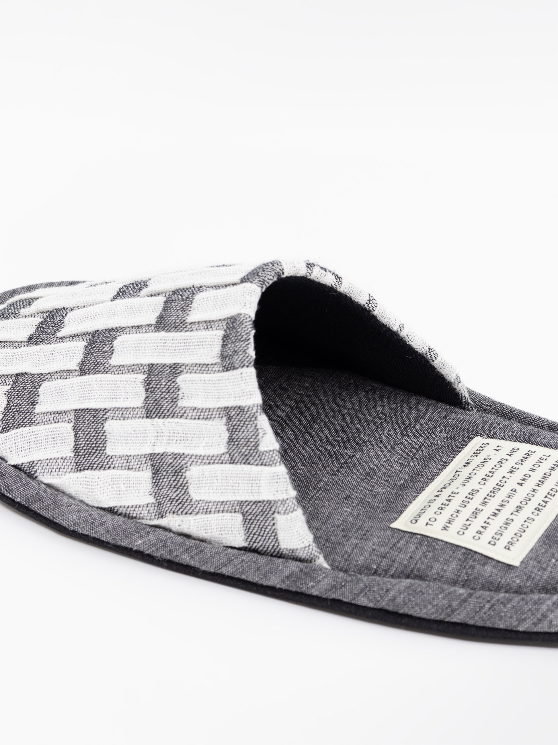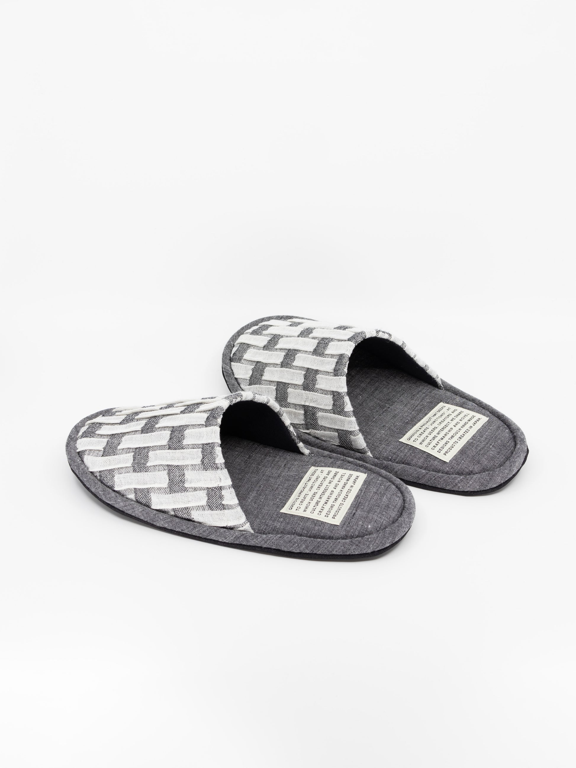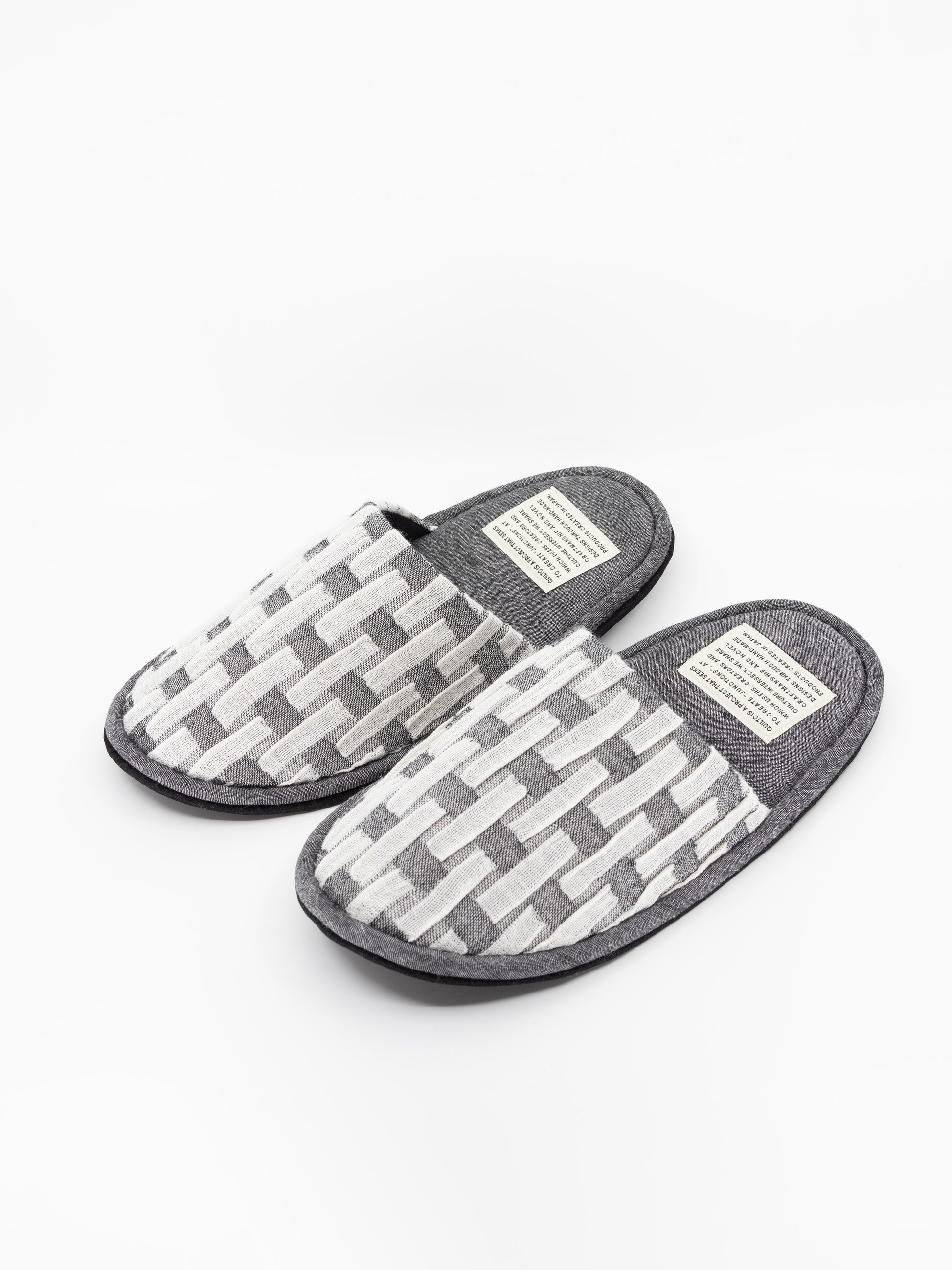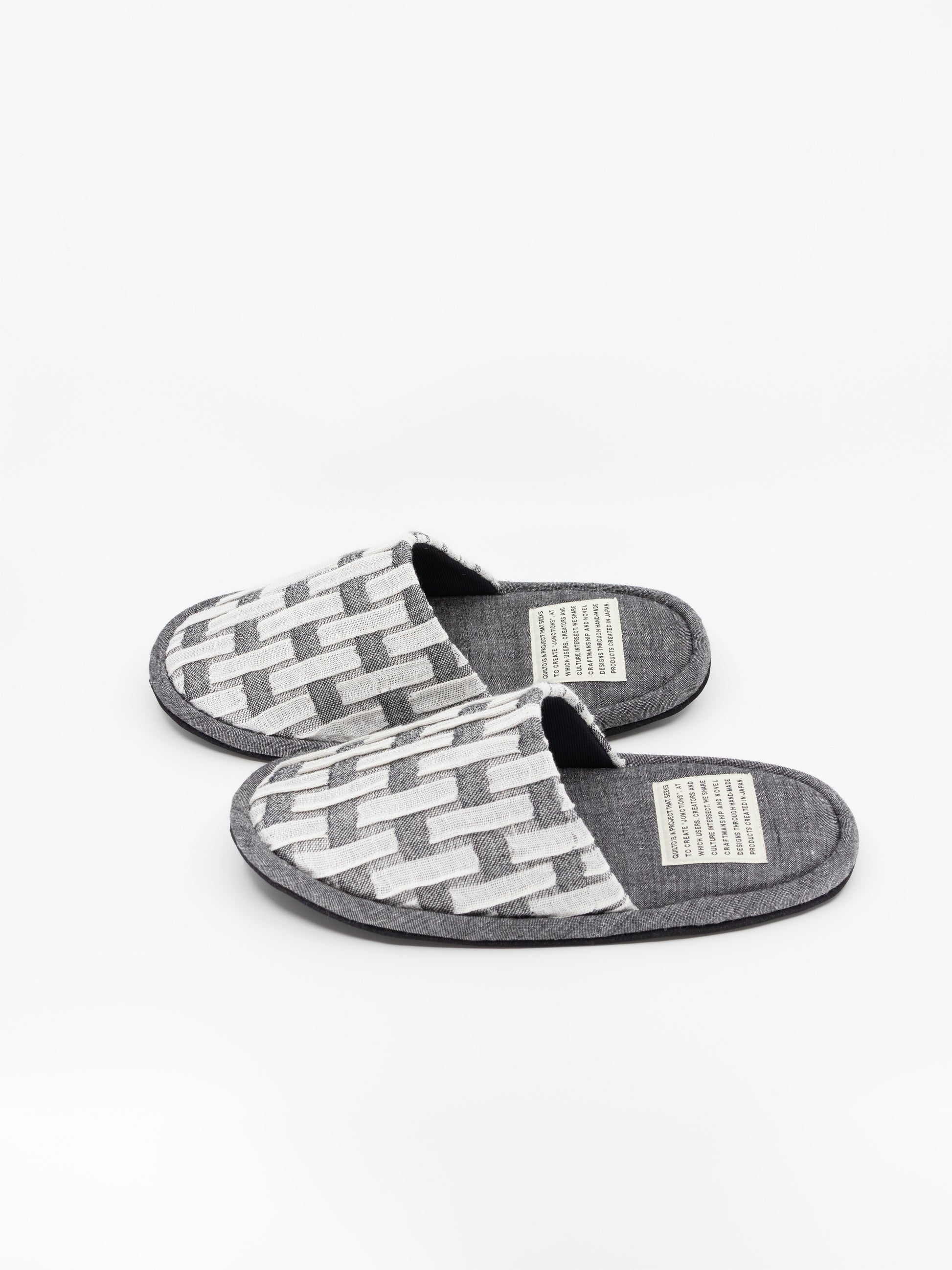 1984年の設立以来、日本各地に残る染織産地で新しい素材、技術を組み合わせ独創的な布地をつくり続けている<NUNO>。 そんなNUNOのテキスタイル<Wood Joinery>をアッパーに用いて制作しています。
